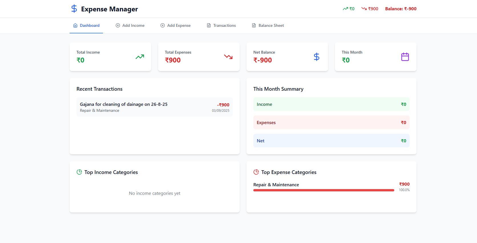 This is the Expense Tracker for your day to day expenses and management where you can get the details of each transaction and balance sheet for each month.